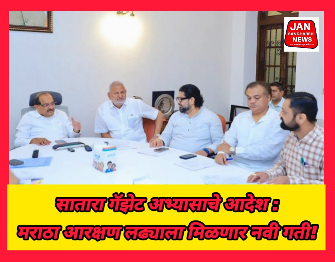 पुणे, ता.१० : मराठा आरक्षणाच्या प्रश्नावर गेल्या काही महिन्यांपासून राज्यभर मोठे आंदोलन सुरू आहे. शासनाकडूनही या प्रश्नाकडे गांभीर्याने पाहिले जात असून, आंदोलकांच्या मागण्यांचा सखोल अभ्यास करून त्यावर सकारात्मक भूमिका घेण्याचे प्रयत्न सुरू आहेत. हैद्राबाद गॅझेटनंतर आता सातारा गॅझेटचा अभ्यास करण्यासाठी शासन पुढे सरसावले असून, या निर्णयामुळे मराठा समाजाच्या आरक्षण लढ्याला नवी गती मिळणार असल्याचे मानले जात आहे.