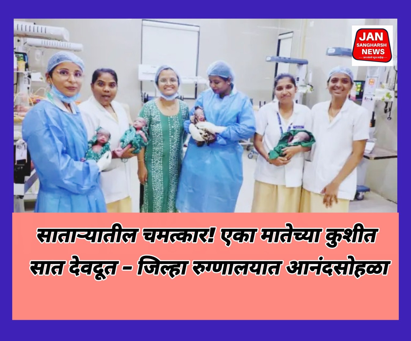 सातारा, ता.१४ : “देव पोटभर देतो” असं म्हटलं जातं. पण साताऱ्यातील एका साध्या कुटुंबाच्या घरी देवाने अक्षरशः सात देवदूतांची भेट दिली आहे. या चमत्काराने जिल्हा शासकीय रुग्णालयात जणुकाही आनंदाचा सोहळाच रंगला.
