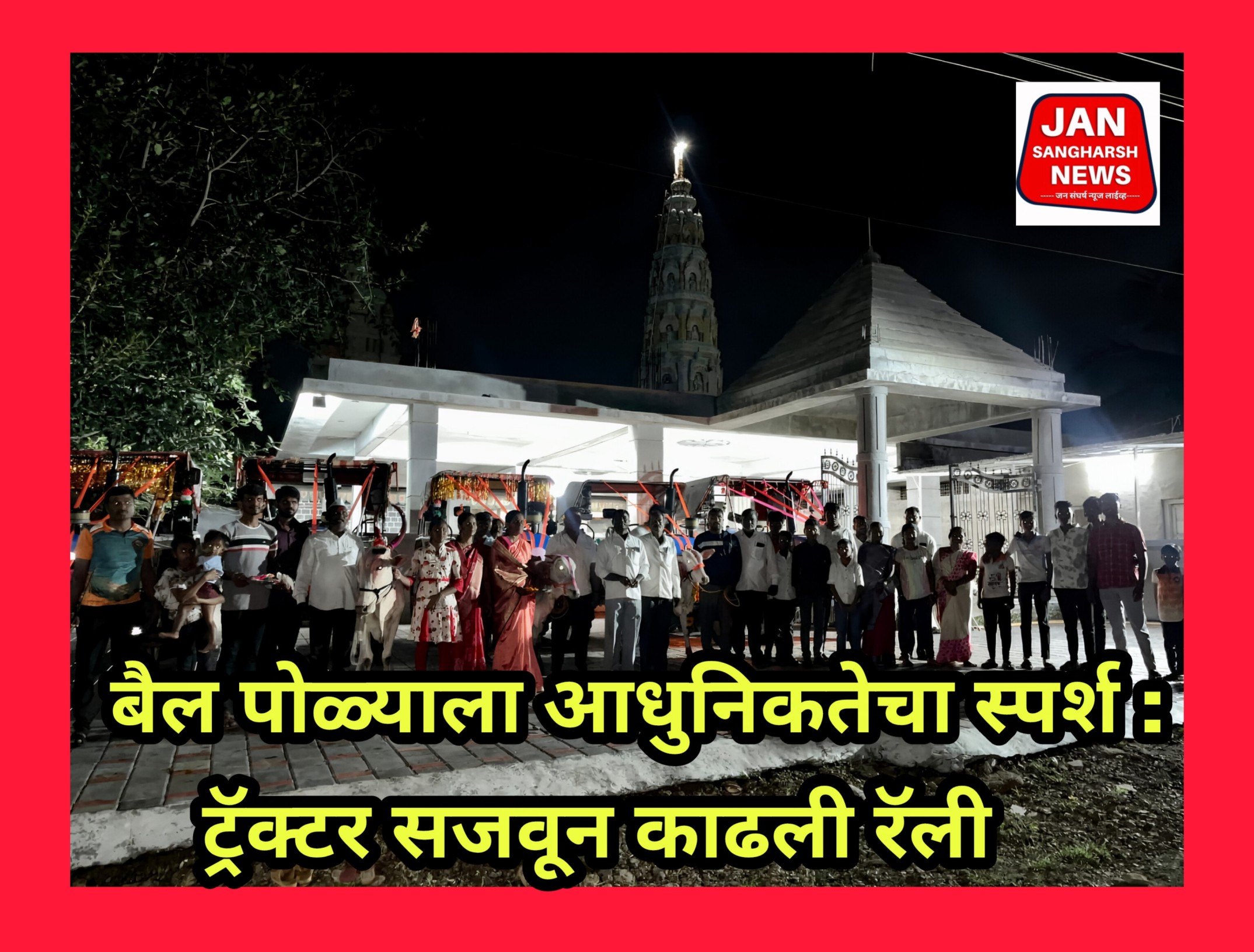 या रॅलीत ट्रॅक्टर मालक वाल्मीक चव्हाण, गुड्डू पवार आणि वैभव चव्हाण यांनी सक्रिय सहभाग नोंदवला. त्यांच्या सजवलेल्या ट्रॅक्टरने सर्वांचे लक्ष वेधून घेतले. या रॅलीची खासियत म्हणजे ट्रॅक्टरच्या अगोदर पारंपरिक पद्धतीने सजवलेली बैलांची जोडी होती. गावकरी ढोल-ताशांच्या गजरात उत्साहाने सहभागी झाले होते.