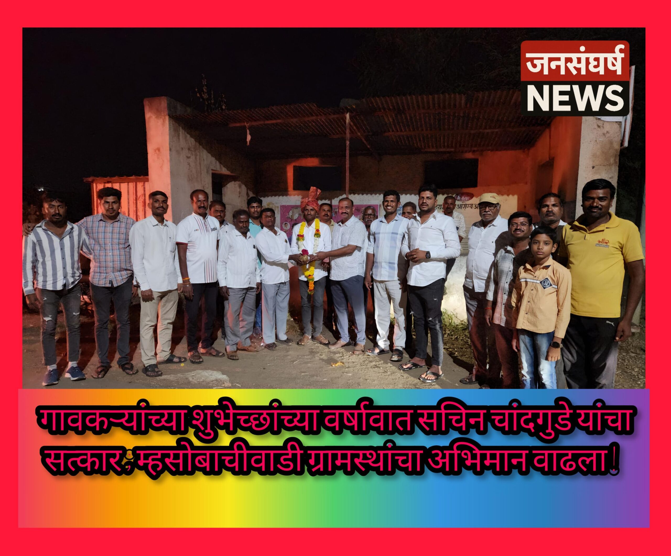 सत्कारानंतर बोलताना सचिन चांदगुडे म्हणाले, “गावकऱ्यांनी दाखविलेल्या विश्वासाला मी पात्र ठरेन. पक्ष संघटन अधिक बळकट करण्यासाठी आणि कार्यकर्त्यांच्या अडचणी शासनदरबारी मांडण्यासाठी मी सदैव तत्पर राहीन.”