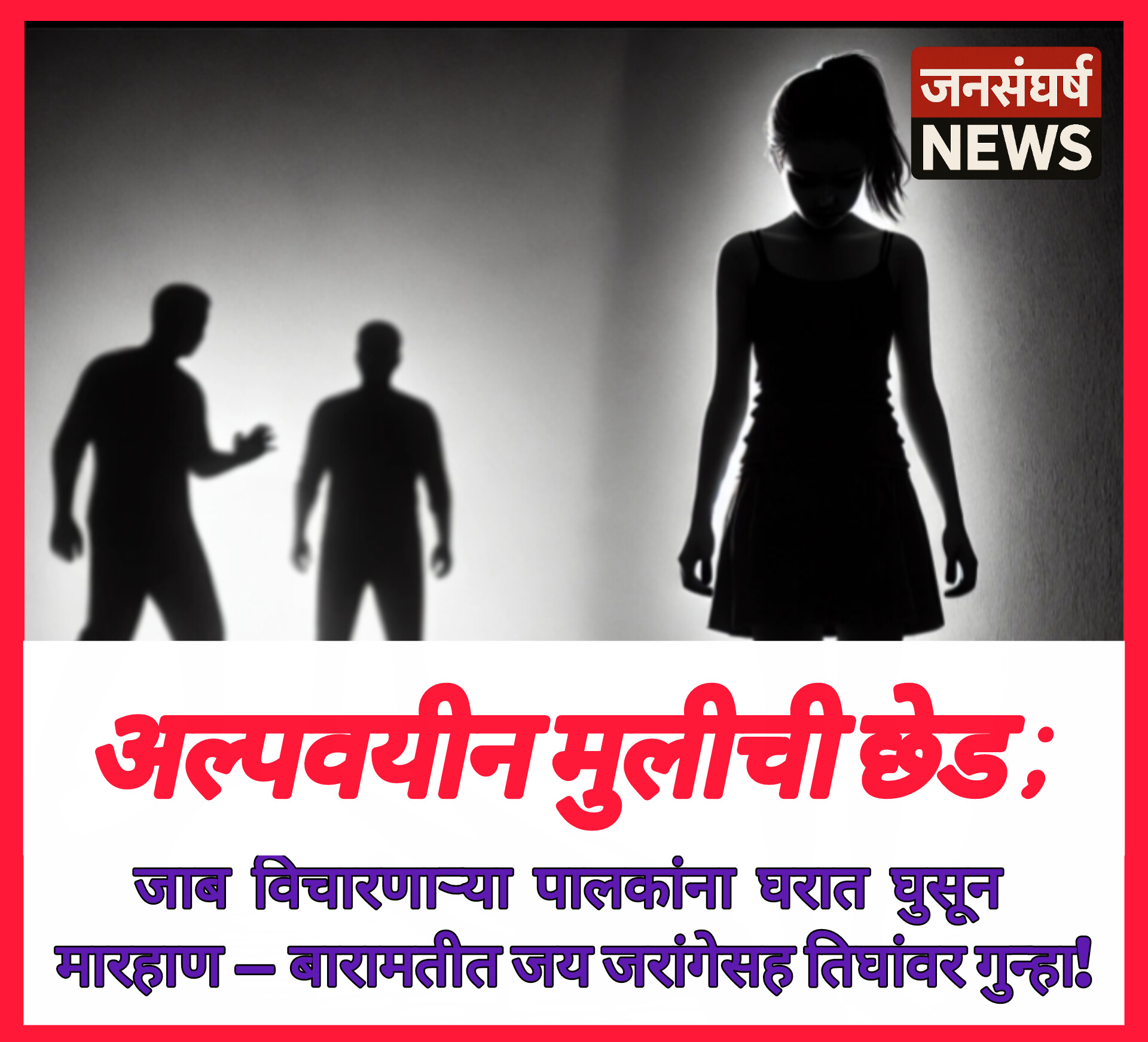 अल्पवयीन मुलीची छेडछाड ; जाब विचारणाऱ्या पालकांना घरात घुसून मारहाण – बारामतीत जय जरांगेसह तिघांवर गुन्हा!